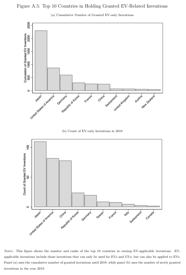 分析では、上の要旨に記されたことのほか、EVの知識の蓄積が既にある企業ではEV技術のイノベーションが進んだ半面、GVの専門技術があるとEV関連のイノベーションが妨げられることが示されたとの由。従って既にEVに集中していた企業は産業政策でますます便益を得て、EVを対象とした持続的な産業政策の価値を高めていった、とのことである。